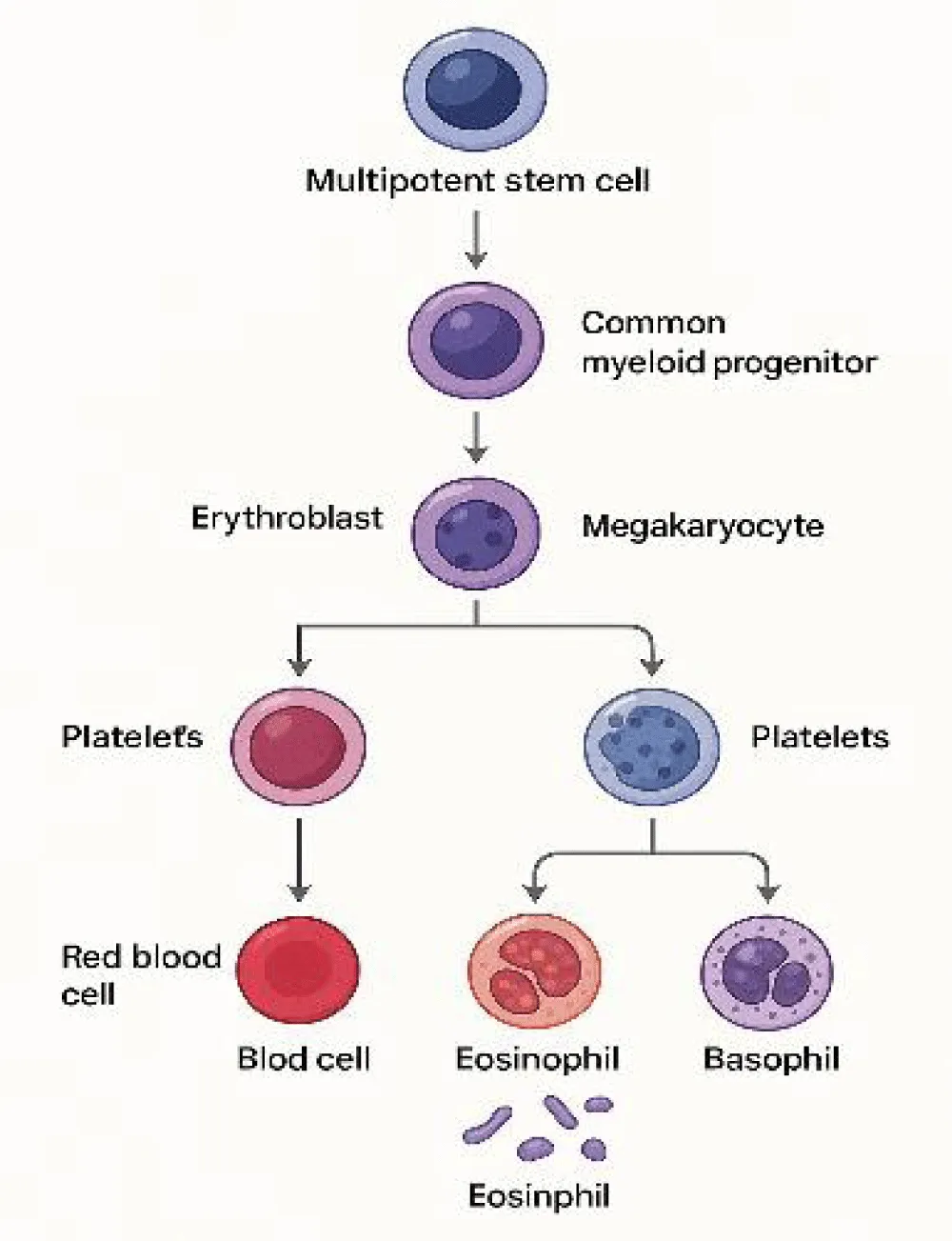 Hemoglobin comprises approximately 95% of the total protein content in RBCs, facilitating gas exchange and contributing indirectly to immune processes through the transport of inflammatory mediators and antibodies [4,5]. Hematopoiesis encompasses the formation, proliferation, and maturation of precursor cells into functional blood elements, ensuring oxygen delivery through hemoglobin (Figure 3) [6,7].