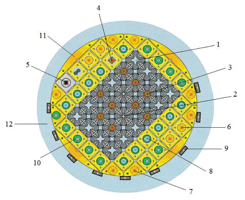 Figure 2 shows a cartogram of the active core of the WWR-SM reactor (example).